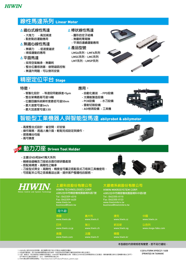 沈陽柯瑞艾特精密機械有限公司經營上銀全系列直線導軌、微型導軌、電動滑臺等各類產品,倉庫備有大量庫存。上銀直線導軌精密高、噪音低、壽命長,通用性強,歡迎電話咨詢024-22515196索取詳細目錄。